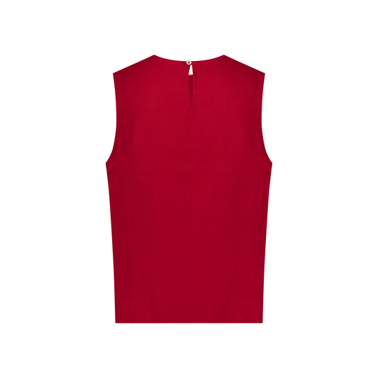 Sleeveless Linen Top - Cherry Red